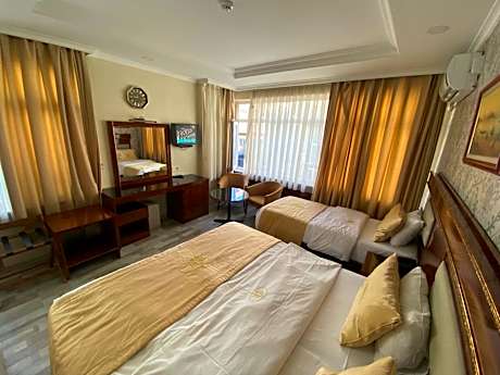 Located in Istanbul, 1.9 miles from Suleymaniye Mosque, Elit Palace Hotel provides accommodations with a garden, private parking, a shared lounge and a terrace. Each room at the 4-star hotel has city views, and guests can enjoy access to a restaurant and to a bar. The property has a 24-hour front desk, airport transportation, room service and free WiFi throughout the property. At the hotel each room includes air conditioning, a seating area, a flat-screen TV with satellite channels, a safety deposit box and a private bathroom with a shower, free toiletries and a hairdryer. Guest rooms include a desk. The breakfast offers buffet, American or Asian options. Spice Bazaar is 2 miles from Elit Palace Hotel, while Galata Tower is 2.4 miles away. Istanbul Sabiha Gokcen International Airport is 23 miles from the property.