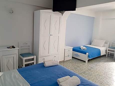 Roulla Villa, located just a short walk from Perissa Beach, offers an outdoor pool with hot tub facilities and weekly Greek theme nights. This family-run property is designed in the traditional style of Santorini. Each of the rooms features private bathroom and a fully equipped kitchen. Guests can choose to stay at Roulla Villa and enjoy a swim at the pool or walk to the nearby Perissa Beach. The 7-miles long beach, featuring black sand. Guests can have a drink at the pool bar area. Roulla Villa provides rental services. There is also a local bus stop just 164 feet from the hotel with frequent buses connecting with the other parts of the island.