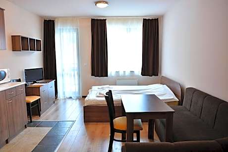 Featuring mountain views, Royal Bansko - Family Apart Hotel With All Inclusive Light or HB&Drinks and Hot Pool & Jacuzzis in Bansko provides accommodations, a fitness center, a garden, a tennis court, a bar, and a shared lounge. This condo hotel offers free private parking and an elevator. The condo hotel features an indoor pool with a pool bar, as well as a sauna and a 24-hour front desk. At the condo hotel, all units include a outdoor furniture and a flat-screen TV. Rooms have a kettle, a private bathroom, and free Wifi, while some rooms also boast a terrace and some have inner courtyard views. At the condo hotel, units have bed linen and towels. Buffet and continental breakfast options with warm dishes, fresh pastries, and fruit are available. Guests are welcome to eat at the on-site family-friendly restaurant, which is open for dinner, lunch, brunch, and high tea. The area is popular for skiing and cycling, and ski equipment rental is available at this 3-star condo hotel. Kids pool is also available for guests at the condo hotel. Holy Trinity Church is 1.6 miles from Royal Bansko - Family Apart Hotel With All Inclusive Light or HB&Drinks and Hot Pool & Jacuzzis, while Bansko Municipality is 1.8 miles from the property. Sofia Airport is 106 miles away.