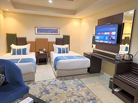 Located in Khamis Mushayt, 8.4 miles from Al Sa'ada Park, Royal Boutique Hotel provides accommodations with a fitness center, free private parking, a shared lounge and a terrace. This 4-star hotel offers room service, a 24-hour front desk and free WiFi. The hotel features an indoor pool and a concierge service. Selected rooms have a kitchen with a fridge, a microwave and a minibar. You can play pool at the hotel. Royal Boutique Hotel features amenities such as an on-site business center, sauna and hot tub. King Khalid University is 11 miles from the accommodation, while Al Salam Theme Park is 13 miles away. Abha Airport is 9.3 miles from the property.