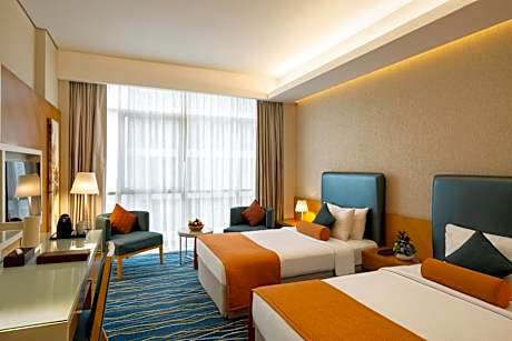 Royal Continental Hotel - Dubai Airport offers top-notch services and amenities, ensuring guests experience utmost comfort. Share your photos and respond to emails at your convenience, thanks to the free Wi-Fi internet access offered by hotel. Should you require transportation to or from the airport, hotel is able to organize it prior to your arrival date. Taxi and car hire offerings at the hotel simplify arranging your excursions, explorations, and additional activities in Dubai.Visitors can take advantage of complimentary parking directly at the hotel.Reception services such as concierge service, express check-in or check-out, luggage storage and safety deposit boxes are available to accommodate your requirements. Securing top-notch tickets and snagging sought-after dining reservations become effortless, thanks to the hotel's ticket service and tours. Traveling with minimal baggage is achievable at Royal Continental Hotel - Dubai Airport, as the hotel's dry cleaning service and laundry service ensures your garments stay fresh.Room amenities like 24-hour room service, room service and daily housekeeping contribute to making a perfect selection for your stay.Smoking is limited to specified smoking zones.Each accommodation at Royal Continental Hotel - Dubai Airport is thoughtfully created and adorned to provide visitors with a comfortable, home-like atmosphere. In certain rooms, the hotel offers linen service, blackout curtains and air conditioning for guest convenience and satisfaction.At Royal Continental Hotel - Dubai Airport, the uniquely tailored rooms provide a configuration choice resembling a separate living room.In select rooms, guests at the hotel can enjoy top-notch in-room entertainment with daily newspaper, television, in-room video streaming and cable TV available for their convenience. Rest assured, in a few chosen rooms, you will find the convenience of a coffee or tea maker, bottled water, instant coffee, instant tea and mini bar at your disposal. Royal Continental Hotel - Dubai Airport offers a hair dryer, toiletries and bathrobes in the restrooms of specific accommodations. Embark on your holiday experience in the most ideal manner. Commence each morning of your visit with an on-site breakfast.Experience the delight of a fresh morning by savoring excellent coffee at the cafe situated within hotel.Should you prefer not to venture out for a meal, the enticing culinary choices at hotel are always available for your satisfaction. No matter your specific dietary needs, rest assured that Royal Continental Hotel - Dubai Airport provides an array of halal choices to ensure your dining experience is nothing short of delightful.Royal Continental Hotel - Dubai Airport provides a superb assortment of leisure amenities for guests to enjoy. Unwind after a long day by stopping by massage, salon, steam room, spa and sauna to rejuvenate your senses.Each day at hotel, immerse yourself in the invigorating waters of the pool, perfect for a rejuvenating plunge or a series of revitalizing laps.For individuals who don't want to skip their exercise routine, visiting the hotel fitness center ensures you maintain your vitality and wellness.