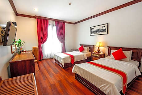 Great care is taken to ensure guests experience comfort through top-notch services and amenities. Remain linked during your visit by utilizing the complimentary internet access available. Experience the wonders of Siem Reap with ease by utilizing the services provided at shuttle. The hotel offers complimentary parking for guests who arrive with their own mode of transport.Effortlessly plan your daily activities and travel requirements with concierge service, express check-in or check-out, luggage storage and safety deposit boxes provided by the front desk services.Securing passes to the city's top attractions is simple with the hotel's ticket service and tours.Repeatedly enjoy your best-loved attire with the aid of the laundry service available at Royal Crown Hotel & Spa.During leisurely days and evenings, in-room amenities such as room service and daily housekeeping enable you to maximize your stay in the room.For minor or impromptu requirements, the convenience stores can promptly cater to them without the necessity of stepping out from the hotel.The hotel is completely smoke-free. In limited designated zones, smoking is exclusively permitted.Crafted for coziness, every guestroom provides an array of features, guaranteeing a tranquil night's sleep while maintaining the level of comfort. For a more enjoyable stay, select rooms at hotel are equipped with linen service, blackout curtains and air conditioning. At Royal Crown Hotel & Spa, a selection of rooms can be found that showcase unique design elements such as a balcony or terrace. Expand your in-room entertainment choices with various amenities, such as cable TV offered in certain accommodations. Rest assured that your hydration needs will be met, as some guestrooms are equipped with a refrigerator, bottled water, instant coffee, instant tea and mini bar.Maintain your cleanliness and comfort using a hair dryer, toiletries and bathrobes available in select guest restrooms. Each morning at Royal Crown Hotel & Spa, a scrumptious, homemade breakfast kick-starts the day. Begin your holiday mornings right with your essential cup of coffee, offered daily at the cafe on-site. During your visit, indulge in a range of delightful culinary choices at hotel to enhance your experience. Experience a fantastic evening effortlessly! Relish an entertaining night without venturing beyond the confines of the bar.Indulge in the numerous pursuits available at Royal Crown Hotel & Spa.Treat and spoil yourself by stopping at massage and spa for a memorable experience. Begin your holiday perfectly by taking a plunge into the swimming pool. At the hotel, enjoy a laid-back beverage experience by the poolside bar, sipping on a soothing cocktail.