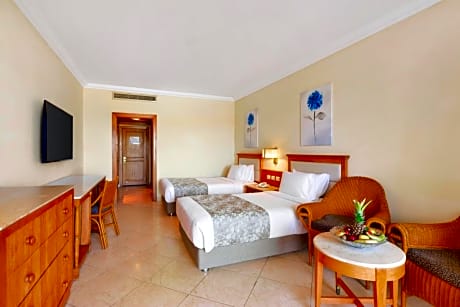 The spacious twin/double room offers air conditioning, a mini-bar, a terrace with garden views as well as a private bathroom featuring a shower.
