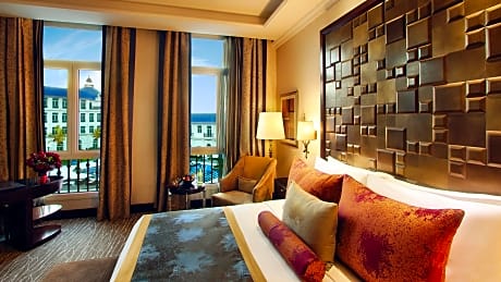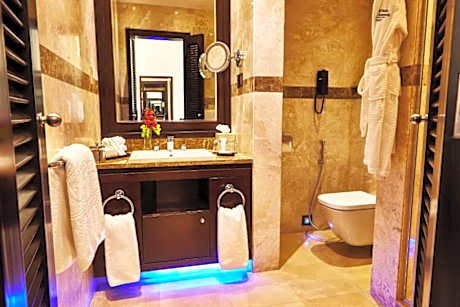 Royal Maxim Palace Kempinski Cairo is a 5-star hotel that offers luxury accommodations in the center of Cairo. It features an all year-round outdoor pool, a palatial inspired courtyard, and a modern fitness center. Cairo International Airport is a 15-minute drive away. Every elegant room comes with a flat-screen TV and a seating area to relax in after a busy day. Rooms have views of the pool, garden or courtyard. Each room includes a private bathroom with a bath or shower, bathrobes, slippers and free toiletries. Guests can enjoy a wide array of culinary delights at one of the 9 restaurants and bars. All day snacks and refreshments are also served at the Royal Club Lounge. The property offers indoor and outdoor event spaces suited for any special event. As we will be setting up our Ramadan Tent. Resense Spa is the first luxury European spa in the city offering a unique relaxing experience where guests can rejuvenate with multiple treatments and sessions. Special events can be arranged at the largest ballroom in Egypt, The Excelsior. Cairo Festival City is 4.3 mi from Royal Maxim Palace Kempinski Cairo, while Cairo Intl Conference Center is 6.2 mi away. The nearest airport is Cairo Airport, 3.7 mi from Royal Maxim Palace Kempinski Cairo.