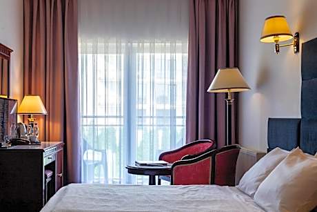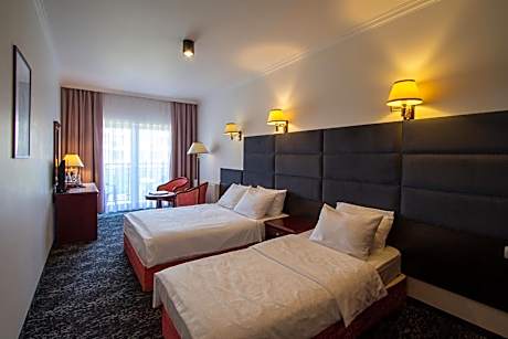 Royal Park Hotel & Spa offers accommodations in Mielno. Its room all have satellite TV and a free internet connection. Guests have access to an indoor swimming pool. The hotel’s heating rooms feature a classic interior design. Each has a satellite TV, radio and telephone. Their private bathrooms all feature showers. Guests of the Royal Park are only 10 minutes’ walk away from Friendship Promenade, which is next to the beach on the Baltic Sea. Lake Jamno is 2625 feet away. The guest’s of the Royal Park & Spa can visit the spa and wellness center and relax in the hotel’s hot tub or sauna. They also can get a massage or take rent a bike directly at the hotel. A breakfast buffet is available in the morning in the hotel’s restaurant. Later in the day it serves Polish and international dishes.