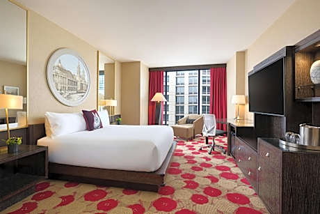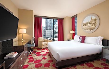 This 4-star boutique hotel is located in the heart of downtown Chicago's River North neighborhood. The eco-friendly hotel offers an indoor pool and sundeck. Featuring designs and décor inspired by the Chicago World’s Fair, every room at the The Royal Sonesta Chicago River North offers a 37-inch flat-screen TV with in-room fitness channels. Rooms also include large bathrooms with designer bathrobes and designer bath amenities. Guests at the The Royal Sonesta Chicago River North can use the 24-hour fitness center with modern equipment. A free morning coffee and tea bar is provided by the The Royal Sonesta Chicago River North. CBR, located next to the hotel, serves regional cuisine for breakfast and dinner. On the weekends a brunch menu is available as well. Just 1 minutes’ walk from the CTA Red Line, this hotel is less than 1 mile from Navy Pier and Millennium Park. O’Hare International Airport and Midway Airport are within 17 miles of this hotel.
