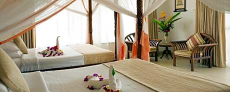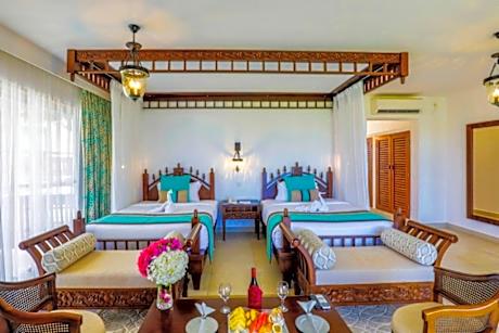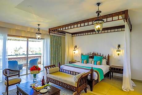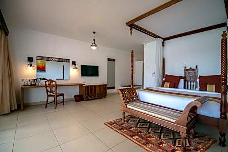 Right on a white sandy beach with a coral reef, Royal Zanzibar Beach Resort has tropical gardens with 4 outdoor pools and water-sports facilities. Guests can also relax with a massage at the Spa. The Resort features modern-Zanzibar design and all rooms have a large bed surrounded by a mosquito net and a large balcony. The private bathrooms contain a bathtub and shower and are stocked with free toiletries. Each of the 2 restaurants serves a variety of cuisine, ranging from an international breakfast at Spices to fresh, local seafood at Samaki. Coco Bar provides light meals and beverages during the day. There is a game room with darts and ping-pong, or guests can work out at the gym. On the north coast of Zanzibar, Royal Beach Resort is a 60-minute drive from Stone Town and 37 miles from the Zanzibar International Airport.