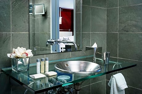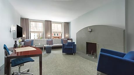 This New York City hotel is located on 44th Street and is 1056 feet from Times Square. It features guest rooms with flat-screen TVs. Each stylish and modern room at Royalton New York features a bathroom with a slate and glass shower. WiFi is available. Royalton New York is a design hotel with a large brass fireplace in the lobby. A business center is available . Radio City Music Hall and Bryant Park are 2113 feet from the property. Guests can also find 2 subway stations within 2297 feet of the property.