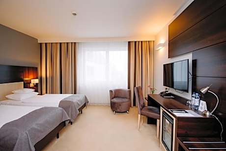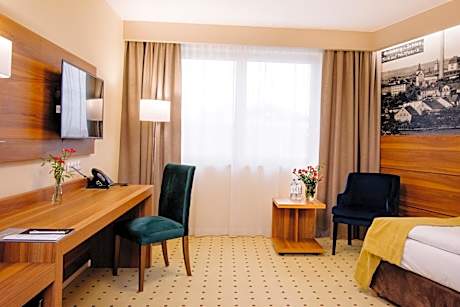 Located in the center of Zielona Góra, Ruben Hotel offers air-conditioned rooms with flat-screen TVs with satellite channels and free Wi-Fi. There is a hammam, hot tub and sauna on-site. The rooms of the Ruben are soundproofed and feature a modern interior décor. All have a mini-bar, work desk and a private bathroom with a hairdryer. The Srebrna Gora Restaurant is located on the ground floor and serves Polish and international dishes. In the mornings a breakfast buffet is available. The bar serves a wide selection of drinks. Focus Park shopping center is within 1640 feet. The Old Town and the town hall are within 1476 feet from the Ruben. Zielona Góra Railway Station is a 5 minute drive away.