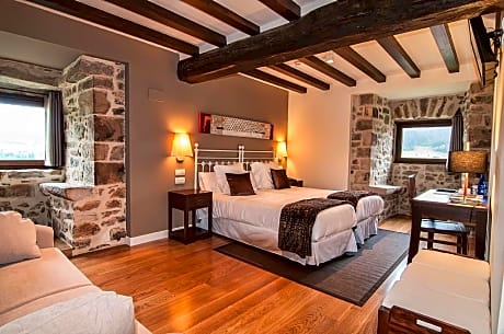 This charming, air-conditioned room has modern décor with traditional elements, such as exposed stone walls and wooden beams. It features free Wi-Fi, a TV and a private bathroom with a hairdryer. This room offers views over the town of Oñati.