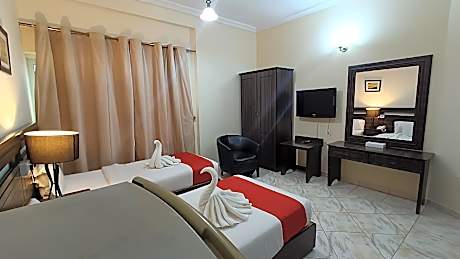 RUWI BEACH HOTEL APARTMENTS provides flawless service and all the necessary facilities for visitors. Stay connected with your associates, as complimentary Wi-Fi is available during your entire visit.In order to ensure the utmost level of relaxation, the guestrooms feature an inviting design and are equipped with all basic necessities, creating a delightful stay experience.To ensure a pleasant stay, a selection of rooms at serviced apartment come furnished with linen service and air conditioning, all designed with your ease in mind.In select rooms, visitors can enjoy a touch of amusement with the availability of television and cable TV for their entertainment needs. Rest assured, quenching your thirst is not a concern with a refrigerator available in select accommodations.You'll be pleased to know that select guest bathrooms offer bathroom amenities such as toiletries, ensuring a comfortable stay. Throughout the day, engage in the entertaining activities available at RUWI BEACH HOTEL APARTMENTS. Make sure to discover the readily available beach at serviced apartment.
