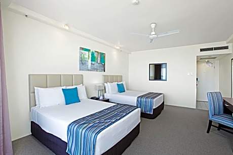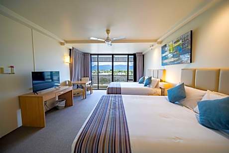Overlooking the Coral Sea, Rydges Esplanade Resort Cairns offers rooms with a private balcony and city, mountain or ocean views. It features 3 swimming pools, 2 tennis courts Set among beautiful tropical gardens, Rydges Esplanade Resort Cairns offers. Free WiFi is available in hotel-style rooms and all public areas. All air-conditioned rooms feature contemporary décor and includes a satellite TV, a mini-bar and tea/coffee making supplies. A hairdryer and ironing facilities are also provided. Coral Hedge Brasserie serves a sumptuous breakfast from 6:30 a.m. to 9:30 a.m. Lunch is available from 12:00 p.m. to 4 p.m. and Dinner is available from 6 p.m. daily. It also offers 24-hour room service for guests staying at the hotel. Rydges Esplanade Resort Cairns is located on The Esplanade, a 15-minute walk from the Cairns lagoon precinct. Cairns International Airport is a 10-minute drive away.