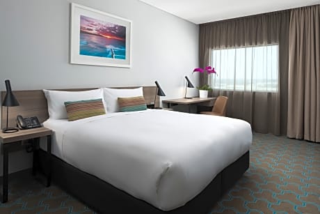 Rydges Sydney Airport is taking hospitality to new heights. We are located a mere 181 steps from the International Terminal Check-in desks, an easy 15-minutes to Sydney’s CBD and the only hotel with public transport facilities at the doorstep. For a speedy arrival or departure, our self-check-in kiosks on the ground level are the ideal solution, allowing you to check in or out in just a few simple steps. With 318 well-appointed rooms and suites, with runway views of the airport and the comfort of our Rydges Dream Bed you will be sure to experience comfort. Offering complimentary hotel wide Wi-Fi along with the latest technology in room entertainment including Chrome Casting. Rydges Sydney Airport have a range of facilities to enhance the value of your stay inclusive of coin operate laundry, 24-hour gym access, lobby library with computer access and printing facilities, airport shuttle could be arranged at an additional charge. Relax and unwind in one of our several Food & Beverage outlets. Boasting three in house venues including Smithy’s Bar located on Ground Level, The Ascot on Mezzanine Level and Cloud 9 Bar, located on level R. All host unique experiences with offerings to appease every appetite. Enjoy a diverse range of beer on tap, domestic and international wines, and beautiful cocktails of sweet, sour and fruity. Food is available from early to late from select outlets with In-room dining operating over 24 hours a day!