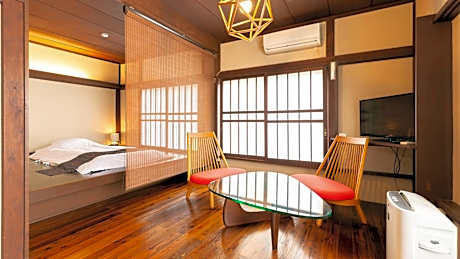 The twin room features air conditioning, a wardrobe, as well as a shared bathroom boasting a hairdryer and slippers. The twin room offers an electric kettle, yukata, heating, a flat-screen TV, as well as a quiet street view. The unit has 2 futons.