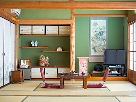 Guests will have a special experience as this quadruple room provides a private open-air bath. The quadruple room has a shared bathroom fitted with a bidet and a hairdryer. The air-conditioned quadruple room offers a flat-screen TV with satellite channels, tatami, an electric kettle, yukata as well as mountain views. The unit has 2 futons.