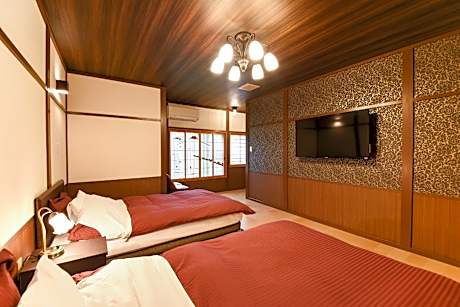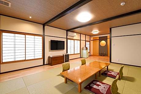 Offering free toiletries, this triple room includes a shared bathroom with slippers. This triple room is air-conditioned and has a seating area with a flat-screen TV, tatami, a mini-bar, a wardrobe, as well as a safe deposit box. The unit has 3 futons.