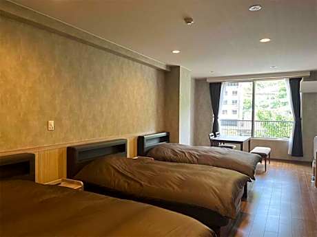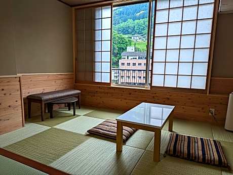 The spacious triple room provides air conditioning, tatami, as well as a shared bathroom featuring a hairdryer and slippers. This triple room features a safe deposit box, yukata, a TV and river views. The unit offers 3 beds.