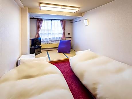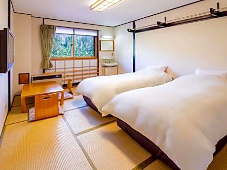 Featuring free toiletries, this family room includes a shared bathroom with a bidet, a hairdryer and slippers. The family room has tatami floors, a seating area with a flat-screen TV, a wardrobe, yukata as well as mountain views. The unit has 6 futons.