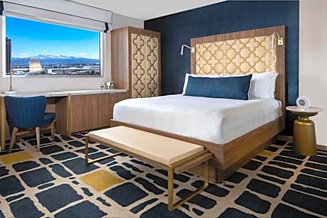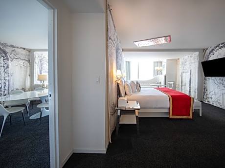 Double your comfort with swanky queen beds, additional seating, a mini fridge and a designated work station in a glam, modern space that’s all yours for the taking. Enjoy a more restful sleep with luxury blackout curtains that allow you to enjoy the interior ambiance. A luxury shower and spa-inspired amenities are the cherries-on-top to completing all 360 square feet of this contemporary space.