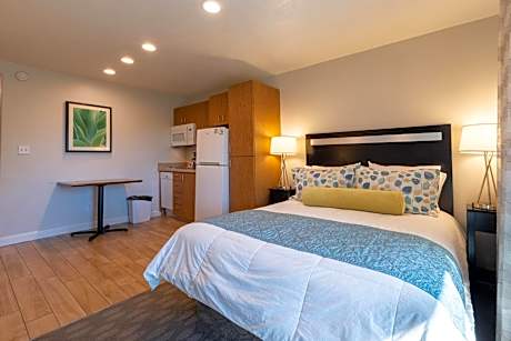 Each room at San Clemente Inn features a private balcony and a full kitchen equipped with a dishwasher, stove, and toaster. Guests can enjoy the convenience of home while exploring the beauty of San Clemente. Cable TV and a DVD player are included in every room for added entertainment.