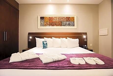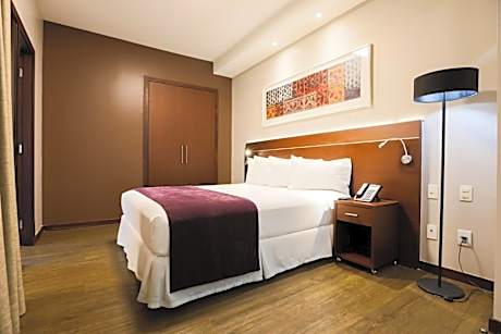 Located close to Do Vale shopping center, this 5-star hotel offers modern rooms and suites with balconies. It also has an on-site pub and a tennis court for recreation. The accommodations at San Diego Suites Ipatinga is air conditioned and equipped with cable TV. All rooms feature private bathrooms. Guests can enjoy buffet breakfast each morning, while the hotel’s restaurant serves international cuisine for lunch and dinner. For drinks, there is a bar in the lobby. San Diego Suites Ipatinga offers free private parking on site (see price list at reception).