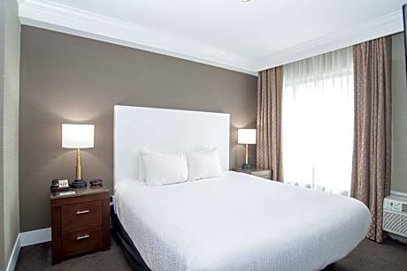 The air-conditioned suite has 1 bedroom and 1 bathroom with a bath and a shower. Meals can be prepared in the well-fitted kitchenette, which features a stovetop, a refrigerator, kitchenware and a microwave. The suite features carpeted floors, a seating area with a flat-screen TV with cable channels, a tea and coffee maker, a wardrobe, as well as a safe deposit box. The unit has 1 bed.