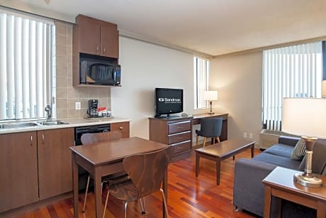 Offering a seasonal outdoor rooftop pool, this all-suite hotel in the center of Vancouver is located near English Bay beach and Stanley Park. All suites feature fully equipped kitchens with ovens and dishwashers. Free WiFi is provided. The suites at the Vancouver Sandman on Davie boast all the comforts of home including in-suite coffee and tea as well as a washing machine and tumble dryer units. Sandman Suites Vancouver on Davie features an on-site fitness center and business center. Additional amenities include a secure underground parking lot and 24-hour concierge service. Sunset Beach park is only 8 minutes' walk away. BC Place is 1.2 mi drive from Sandman Suites Vancouver on Davie.