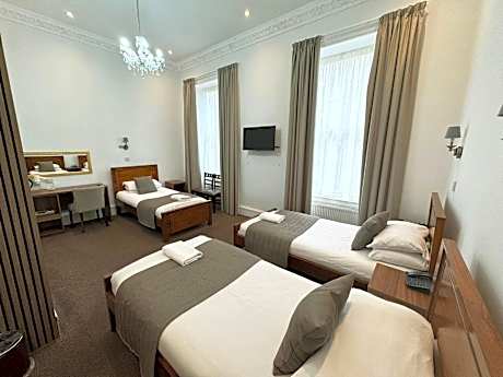 Located in central Glasgow, the family-run Sandyford Lodge- offers free Wi-Fi throughout and a 24-hour front desk. On Glasgow’s famous Sauchiehall Street, it is just 10 minutes’ walk from the Exhibition Center Railway Station. The spacious rooms include a flat-screen digital TV, a direct-dial telephone, and tea and coffee making facilities. Each modern room benefits from an en-suite bath or shower room with a hairdryer. In the mornings, Sandyford Lodge- serves a famous cooked Scottish breakfast. Continental options are also available. Glasgow’s main shopping district is just 1 mile away and offers a wide range of restaurants. Glasgow offers a lively nightlife, with many pubs and bars within a 10-minute walk of the Sandyford Lodge-. Glasgow Science Center is 1 mile away and George Street is 30 minutes’ stroll from the property. The HYDRO is a 10-minute walk away and Glasgow International Airport is within 7 miles. NEWLY RENOVATED MODERN BATHROOMS IN ALL ROOMS