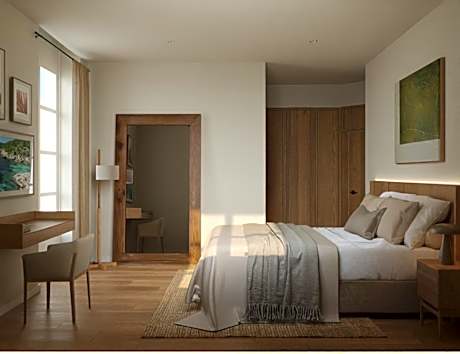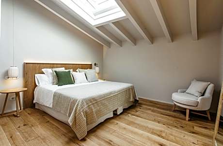 This stylish, air-conditioned room features free Wi-Fi, flat-screen satellite TV and a private bathroom. It has a sloped ceiling with wooden beams and skylights.