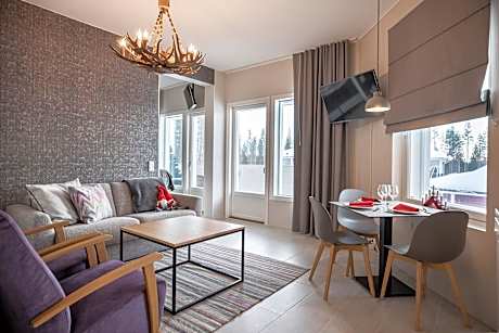Santa Claus Holiday Village is located at the heart of Santa Claus Village in the Arctic Circle, 5 mi north of Rovaniemi. Santa Claus Holiday Village offers three different types of accommodations. All of the heated cottages and suites at the Holiday Village have private saunas and kitchenettes. The cottages also have a terrace. All rooms are equipped with private bathrooms and LCD TVs. Staff can help arrange northern lights hunting, reindeer,- and husky safaris. Guests can also enjoy the skiing and hiking trails nearby. Lappish and international food is served at Three Elves Restaurant and Christmas House Restaurant & Coffee. Free Internet access is available in public areas. A shop selling souvenirs and traditional Lapland goods and food is also found on site. Rovaniemi Airport is located 5 minutes from the village. Guests can also visit Santa Claus a 2-minute walk away.