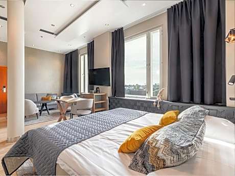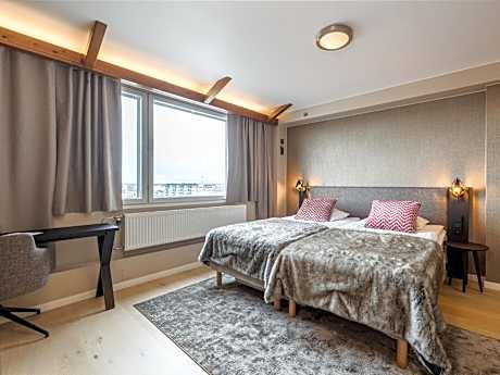 Close to the Arctic Circle in central Rovaniemi, this hotel is a 10-minute drive from Santa Claus Village. It features spacious, well-equipped rooms and 3 restaurants serving Lapland specialties. Each air-conditioned guest room at Santa’s Hotel Santa Claus features a TV a minibar, an electric teakettle and ironing facilities. The private bathrooms include a modern shower and bathtub. Most rooms have 12-foot high ceilings. Restaurant Gaissa serves modern Finnish dishes and Lapland specialties for dinner, and Bar & Grill ZoomUp has a lunch buffet and a dinner menu. Guests can enjoy drinks and light snacks at the Café & Bar Zoomit, open until late in the evening. During the summer months, Hotel Santa Claus guests can enjoy dining or having a drink on the hotel’s terrace. A free sauna is also available for relaxation. Hotel staff can help arrange nearby area excursions, such as snowmobile trips, reindeer safaris or husky dog tours. The popular Arktikum Science Museum is only a 10-minute walk from Santa’s Hotel Santa Claus.