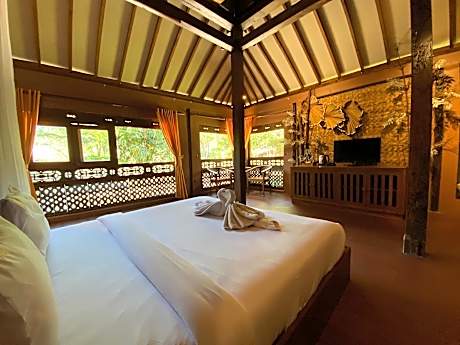 This lakefront property features traditional Indonesian-style architecture set amid cool climate and greenery. Providing daily breakfast, it has a small boat ride around the lake and free WiFi in public areas and rooms. Boasting a private balcony with river views, the spacious rooms are furnished with canopy beds, wooden flooring and local artwork. They come with a private bathroom featuring hot and cold water as well as private toilet. Sapu Lidi Resort is located about a 30-minute drive from Bandung city center and a 45-minute drive from Husein Sastranegara International Airport. For leisure, guests can enjoy canoeing in the lake or browse through the gift shops on site. Added conveniences include a 24-hour front desk, laundry service and free parking. Featuring beamed roofs, Sapulidi Restaurant serves Indonesian and Sundanese specialties in a traditional setting. Room service is available.