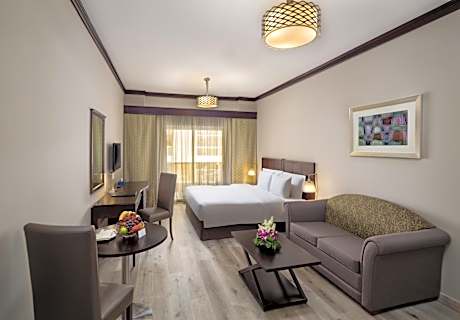 The elegant Savoy Crest offers modern accommodations, 15 minutes by foot from BurJuman Mall. Luxurious amenities include an outdoor pool with sun loungers and a fitness center. The modern and spacious apartments feature well-equipped kitchens. Each is air conditioned and offers free wired internet and a living room. Guests can relax in the sauna or have fun at the games room. Savoy Crest Hotel Apartment also has a 24-hour front desk where guests can get information about local attractions and tours. Breakfast is freshly prepared and served at the coffee shop. There is an à la carte menu available for lunch and dinner. Free private parking and a car rental service is offered on site. Dubai Museum, Bur Dubai Shopping Malls, and the metro station, linking to the green and red lines, are within walking distance. Dubai Creek Golf & Yachtclub is a 5-minute drive away.