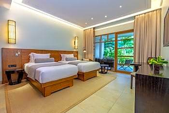 Located on Beau Vallon Beach, Savoy Resort & Spa offers 2 restaurants, 1 bar, a large 700 sqm outdoor pool and a 24-hour front desk. Central Victoria is a 6-minute drive away. Free WiFi is available. The modern and spacious rooms and suites are equipped with a balcony, flat-screen satellite TV, mini-bar and air conditioning. The Executive Suites offer ocean views. Featuring a shower, private bathrooms also come with a bath and a hairdryer. Personalized butler service is available for Penthouse guests. Culinary cuisine can be enjoyed at Pescado, overlooking the resort’s pool while Grand Savoy offers a sumptuous breakfast. A variety of massages and beauty treatments are available at Savoy Spa. There is an adults-only swimming pool, a yoga pavilion and 2 saunas. For families with children, the Savoy kids’ club is open daily. The resort also offers a tennis court and a fitness center. Staff at Savoy Resort & Spa can help you organize trips in Mahe or a day trip to other islands. The Botanical Garden is 3.1 mi away and Seychelles International Airport can be reached within 25 minutes by car.