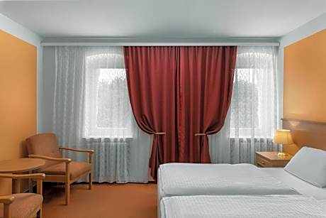 Located in Františkovy Lázně and with Colonnade by the Singing Fountain reachable within 24 miles, Savoy Spa & Kurhotel provides a tour desk, non-smoking rooms, a restaurant, free WiFi throughout the property and a bar. This 4-star hotel offers luggage storage space. The hotel has an indoor pool, sauna and a 24-hour front desk. At the hotel all rooms come with a seating area, a flat-screen TV with satellite channels, a safety deposit box and a private bathroom with a shower, free toiletries and a hairdryer. All guest rooms feature a desk. Savoy Spa & Kurhotel offers a buffet or continental breakfast. Guests at the accommodation will be able to enjoy activities in and around Františkovy Lázně, like cycling. The Singing Fountain is 24 miles from Savoy Spa & Kurhotel, while Soos National Nature Reserve is 6.2 miles away. Karlovy Vary International Airport is 36 miles from the property.