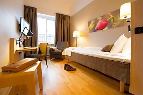 Housed in a late 19th-century building, this hotel is 330 ft from Skövde Central Train Station. It has a restaurant and store and offers free Wi-Fi, gym and sauna access. Guest rooms at Scandic Billingen have a private bathroom with bathtub or shower. All are equipped with cable TV and pay-per-view TV access. The in-house restaurant and bar, Kellman, serves Swedish as well as international dishes. All younger guests receive a welcome present. Next to the restaurant is a playroom with games, toys and movies. In addition, the hotel organizes competitions and other activities for children. Skövde Culture Center is just 165 ft from Scandic Billingen. Skara Sommarland Amusement Park is 12 miles away. Scandic Billingen is certified as an environmentally friendly hotel.