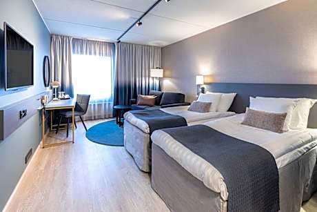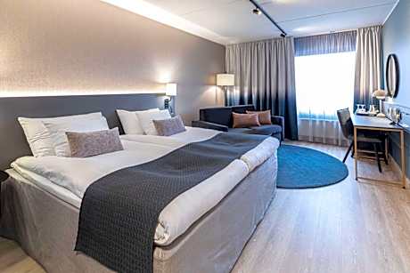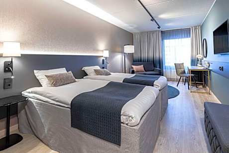 Conveniently located near the train station in central Jyväskylä, this modern, comfortable hotel offers free breakfast, Wi-Fi, as well as free 24-hour access to a fully equipped gym. The spacious, bright guest rooms at Scandic Jyväskylä Station feature traditional décor in green and brown tones. Each guest room has a fresh marble bathroom. Unwind in the evenings by watching a film on cable TV in the privacy of your room. After a day of sightseeing in the city, enjoy a relaxing sauna bath or take a dip in the pool at Scandic Jyväskylä Station. Then, treat yourself to a meal at the in-house restaurant. Borrow a bike from the hotel and explore the city at your own convenience. Guests can also borrow yoga mats, Nordic walking poles and aqua jogging belts. The Jyväskylä region offers excellent opportunities for downhill and cross-country skiing. Summertime activities include golf. Scandic Jyväskylä Station’s central location gives easy access to shopping, culture and entertainment. The surrounding area has plenty of bars and restaurants.