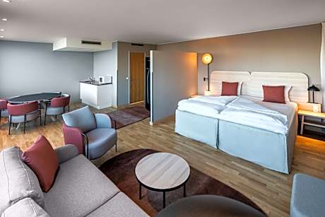 This eco-friendly hotel is 2 train stops from Copenhagen Central Station and Tivoli Gardens. It offers in-room flat-screen TVs and a sauna and gym. WiFi is free. Scandic Sydhavnen’s rooms feature wooden floors, a work desk and a private bathroom. Some also include a seating area with a sofa. Scandic Sydhavnen Hotel’s generous breakfast buffet includes organic options. The stylish, bright restaurant offers international cuisine and a summer terrace. The bar has a small library, while the 24-hour lobby shop sells drinks, snacks and toiletries. Minigolf and a playroom with toys and computer games will keep younger guests happy. Vesterbro’s trendy shops and restaurants are within 15 minutes’ walk. Sydhavn Station is 492 feet away.