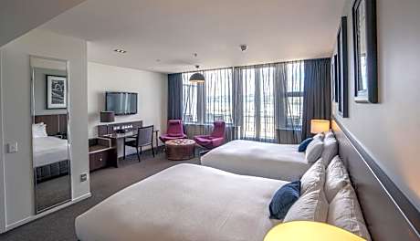 Scenic Hotel Dunedin City is a 4.5-star hotel which offers modern accommodations, many with harbor views. The hotel is located only 2 blocks from the Octagon, the city's famous landmark. Guests enjoy free WiFi. There is a great selection of contemporary guest rooms, all of which have a modern bathroom. Some of the rooms overlook the harbor, some offer views over the city. The hotel's restaurant is open daily for breakfast and has an a la carte menu. There are several restaurants and cafes within walking distance. The Scenic Hotel Dunedin City is a short walk from the Octagon, Fortune Theater and the city's central business district.