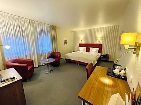 Schloss Hotel Herborn is located in the historic center of Herbon, just 984 feet from the River Dill and 492 feet from Herborn Castle. The hotel offers wellness treatments and free use of the sauna and steam room. The rooms at Schloss Hotel Herborn are spacious, classically decorated and all include an private bathroom with hairdryer, bathrobes and slippers. A TV, radio and mini-bar are also offered. Guests are invited to dine in the hotel’s Westerwaldstubb restaurant, which also features an outdoor dining area. A coffee bar is located in the lobby and guests can relax in the Schloss Hotel Herborn’s bar. Located in the picturesque Old Town, this hotel is just a 10-minute drive away from the Dillenburg Golf Club. The surrounding Lahn-Dill-Bergland countryside is perfect for hiking, cycling and walks. Schloss Hotel Herborn is located just 2789 feet from the Herborn (Dillkr) Train Station and 1.6 mi away from the A45 motorway. Frankfurt International Airport can be reached in 1 hour by car.