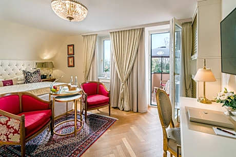 This 5-star superior hotel enjoys a unique location on top of the Mönchsberg, a hill in the center of Salzburg. It is surrounded by a large park and offers panoramic city views, an outdoor infinity pool, and an outdoor hot tub. on-site private parking and free WiFi is available as well. The exclusive rooms and suites are all individually and luxuriously furnished. They feature priceless antiques and marble bathrooms, as well as modern amenities such as air conditioning. Upon arrival, guests receive a welcome drink, a complementary fruit basket and a home made Guglhupf cake. The spa area features a steam bath and a sauna, as well as a wide range of massage, beauty and wellness treatments. Awarded 4 toques by Gault Millau and 1 Michelin star, the gourmet restaurant THE GLASS GARDEN serves traditional Austrian cuisine, international dishes and a wide selection of fine wines. For events, the hotel additionally offers the Mönchstein Saal, a festivity hall. Hotel Schloss Mönchstein is only a 7-minute walk away from the Old Town, which can be reached by car or on foot via a elevator built into the mountain. Guests staying at the hotel will receive free tickets for this elevator. E-refueling station available (for electro cars)