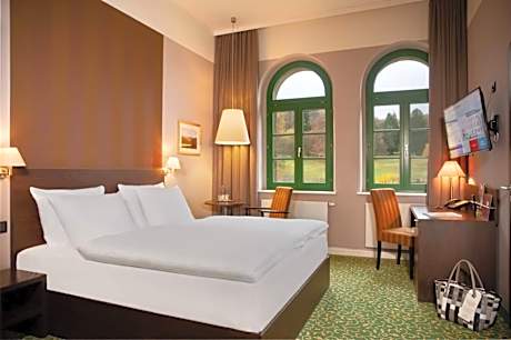 Welcome to Schlosshotel Blankenburg – Your retreat with history and heart Nestled in the stunning setting of a spacious park surrounding the historic Blankenburg Castle in the Harz Mountains, our charming 4-star superior hotel awaits you – a place to arrive, breathe deeply, and enjoy. Our stylishly furnished rooms combine modern comfort with historic flair and invite you to relax with flat-screen TVs, cozy seating areas, and elegant bathrooms. Free Wi-Fi and parking are, of course, available. Start your day with a delicious breakfast buffet. In the evening, we spoil you in our restaurant with seasonal specialties from German and Mediterranean cuisine – served in a stylish setting or on our sunny terrace overlooking the greenery. As a certified sustainable hotel (GreenSign – 79% compliance), we are committed to responsible action – for the environment and for our region. Our hotel's location makes your stay particularly convenient: The train station is just 0.7 mi away, and Blankenburg's picturesque old town is just a few minutes' walk away. Experience warm hospitality, relaxed elegance, and the magic of bygone times – at the Schlosshotel Blankenburg. We look forward to welcoming you!