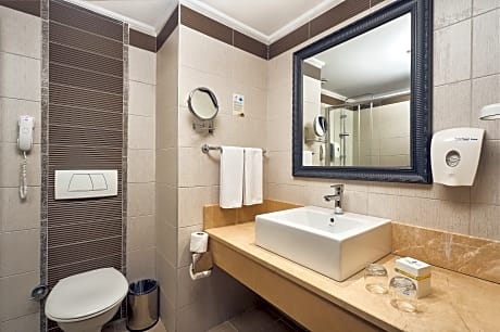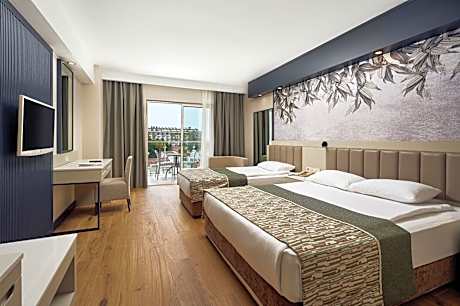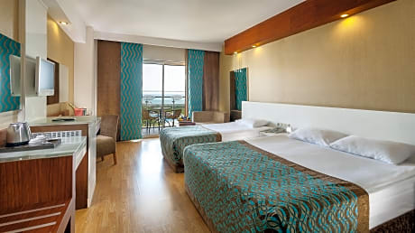 Seaden Sea World Resort & Spa has a seafront location in the center of the Kizilagac district. The property features outdoor pools, water slides, an extensive spa center and a beautiful sandy beach with a jetty. The rooms at Sea World feature modern and bright interiors. They include an LCD TV, minibar and free Wi-Fi. All rooms offer direct or side sea views. Myra Restaurant serves Turkish and international cuisine as an open buffet for breakfast and dinner. For lunch, Okeanos Restaurant also serves in open buffet style. The restaurants offer indoor and outdoor dining options. There are also 7 bars serving a variety of alcoholic and non-alcoholic drinks. Royal Spa includes a steam bath, 2 saunas, a VIP hammam, a public hammam, 12 massage rooms, and skin and body care rooms. There is also a well-equipped fitness center and a tennis court on site. Antalya Airport is 50 miles from the property. Antalya city center is 56 miles away.