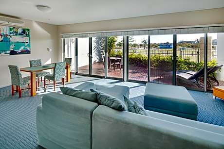 In a beachfront location on Comet Bay, Seashells Mandurah features an infinity pool, hot tub and barbecue area overlooking the ocean. A private balcony with outdoor seating is standard in all apartments. Free secure parking is available on site. The bright and airy apartments include full kitchen and laundry facilities and a spacious sitting area with flat-screen satellite TV and a CD player. Most apartments also feature a spa bathtub and stunning ocean views. Seashells Resort Mandurah is just 1300 ft from the famous Mandurah Ocean Marina. Mandurah Train Station is a 10-minute drive from the property, and Perth is a 1-hour drive away. Guests can enjoy a game of tennis, or relax on the sunny poolside terrace. The resort also offers airport transportation and baggage storage facilities.