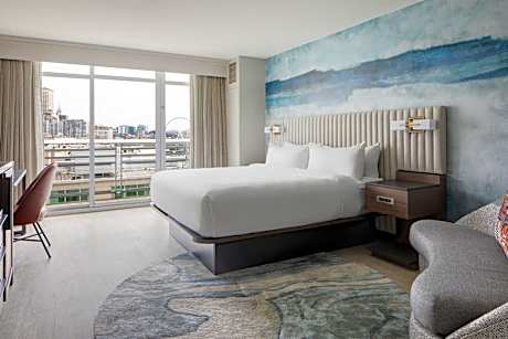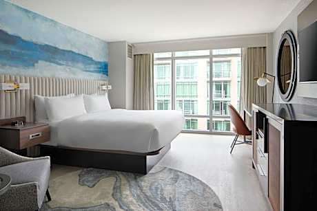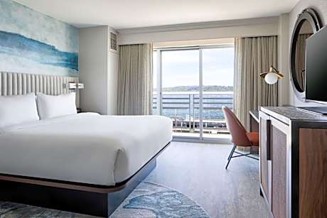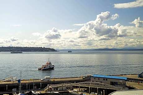 This waterfront hotel, located in downtown Seattle along Elliott Bay, is a 5-minute walk to the Seattle Aquarium. The upscale hotel features newly renovated nautical rooms, indoor/outdoor connecting pool and rooms with a refrigerator. The elegant rooms at Seattle Marriott Waterfront are equipped with a 42-inch flat-screen TV, coffee maker and a work desk. Every bathroom is spacious and many rooms have private balconies with bay and mountain views. Seattle Marriott Waterfront offers a 24-hour modern gym and a full-service business center. Concierge services are available to help arrange tours, reservations and other activities. Waterfront Marriott Seattle’s restaurant, Hook & Plow is open all day and serves American and regional dishes. The Bell Harbor International Conference Center is located across the street. Pike Place Market is a 7-minute walk from the Waterfront hotel. The Space Needle is less than a 5-minute drive away, and SeaTac International Airport is within 25 minutes' drive.