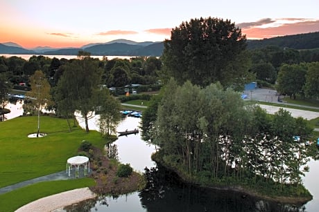 The Seepark Wörthersee Resort enjoys a scenic location, 2953 feet from Lake Wörth and in the immediate vicinity of Klagenfurt University. It features a large spa area with an infrared cabin and an indoor pool. The spacious and elegant rooms are equipped with many modern amenities, including flat-screen TVs. Hotel Seepark's 5.2 ft² MOVE & RELAX area offers saunas, indoor & outdoor pool as well as a steam bath. There are also wellness programs available. For those who like to do some sports, a gym and multiple group courses are being offered. The restaurant serves a diverse selection of Austrian and international dishes. It includes a bar and a terrace overlooking the surroundings. The vicinity of the Seepark Hotel offers a wide range of sports and leisure options, including hiking, cycling, boat trips and swimming in the nearby lidos. All sights of Klagenfurt and the Lake Wörth region are in the immediate vicinity and are easy to reach.
