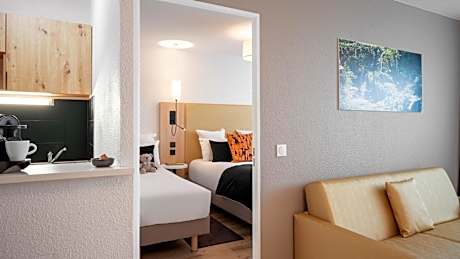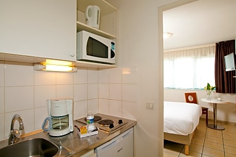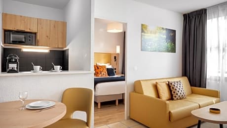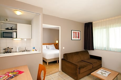 Serris Rive Gauche offers furnished apartments just 1.6 mi from Disneyland Resort Paris. The apartments have fully equipped kitchenettes and free WiFi access. Each Rive Gauche apartment is equipped with an private bathroom, a seating area and a TV. The kitchenettes have hot plates, a refrigerator and a microwave. Guests have access to washing facilities. Restaurants can be found within walking distance. Luggage storage is available at the property and check-in machines can be found at the reception for those who pay with a credit card. Séjours et Affaires Rive Gauche is a short walk from the RER A station by turning right out of the exit and walking towards Val d’Europe shopping center. Private parking is also available onsite.
