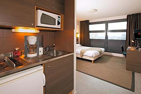 This residence is located in the city center of Lille, in the heart of the business district and between Lille-Flandres and Lille-Europe Train Stations, less than 1969 feet from each. It proposes apartments with free internet access, 5 mi from Pierre Mauroy Stadium, 0.7 mi from Nouveau Siècle Convention Center and 2789 feet from Lille Grand Palais. Each studio or apartment includes a flat-screen TV with cable channels. All have a desk, sofa bed and an private bathroom with bathtub or shower. Breakfast is available each morning in the form of a buffet. You can prepare other meals in the fully equipped kitchenette with a dining area and hot plates. Séjours & Affaires Lille Europe is easily accessible from the N356 motorway, a 12-minute drive away. Lille-Lesquin is 6.7 mi away and the citadel of Lille is a 30-minute walk. Reception hours : Monday to Friday: 7 a.m. to 12 p.m. / 1 p.m. to 10 p.m. (these times are subject to change depending on the establishment's constraints). Saturday, Sunday and 'jors fériés' : 8 a.m. to 12 p.m. / 1 p.m. to 10 p.m. (these times are subject to change depending on the establishment's constraints). Closed from 12 p.m. to 1 p.m. every day.