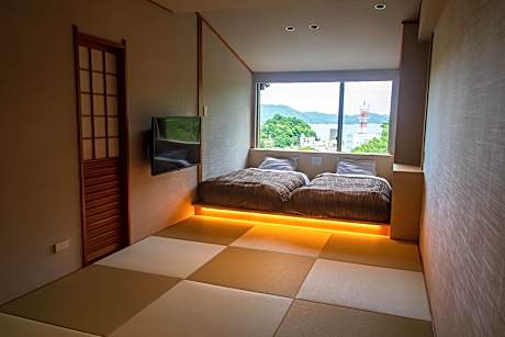 This quadruple room features a hot tub and a private open-air bath. Providing free toiletries, this quadruple room includes a private bathroom with a bath, a shower and a hairdryer. The quadruple room features tatami floors, a seating area with a flat-screen TV, air conditioning, a tea and coffee maker as well as sea views. The unit offers 2 beds.