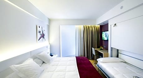 The quadruple room features a TV with cable channels, a private entrance, soundproof walls, a mini-bar as well as city views. The unit has 4 beds.